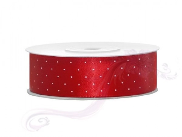 Saténová stuha puntík,červená , šířka 2,5 cm, návin 25 m