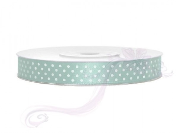 Saténová stuha puntík,sv. menta, šířka 1,2 cm, návin 25 m