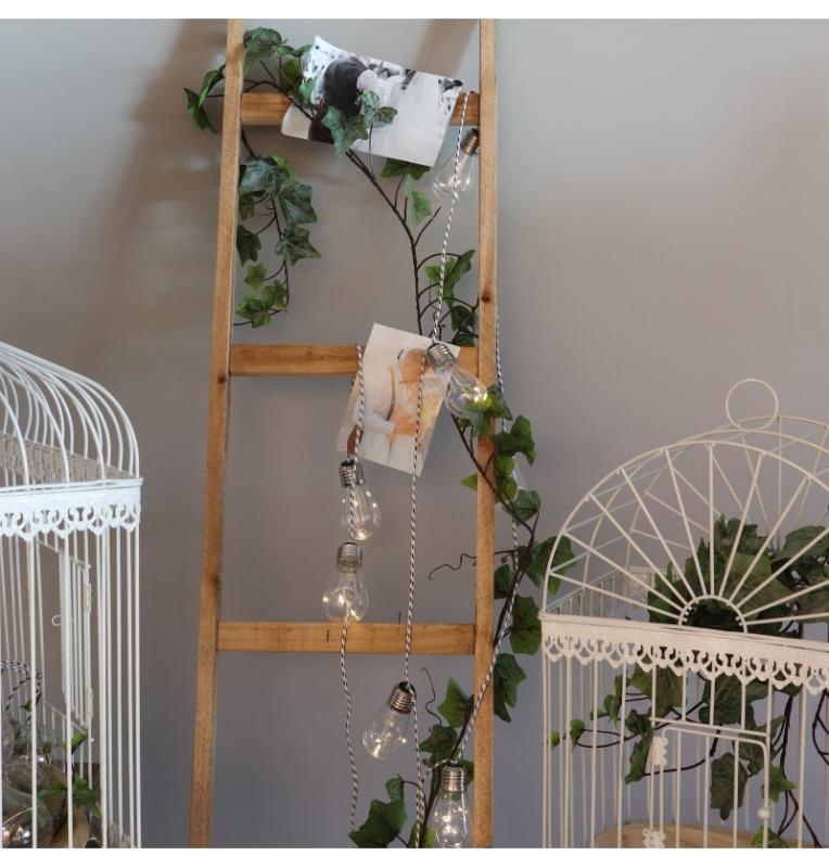 Svatební výzdoba dostává v posledních letech zcela nový rozměr a pomalu se do ní začleňují i věci, které si tradičně se svatbami nespojujeme. Žebřík můžete využít na umístění zasedacího pořádku, nebo třeba vašich fotek, nebo orientační tabuli. Žebřík můžete ozdobit květinami, zaplést do nich světla, nebo zavěsit další dekorace.