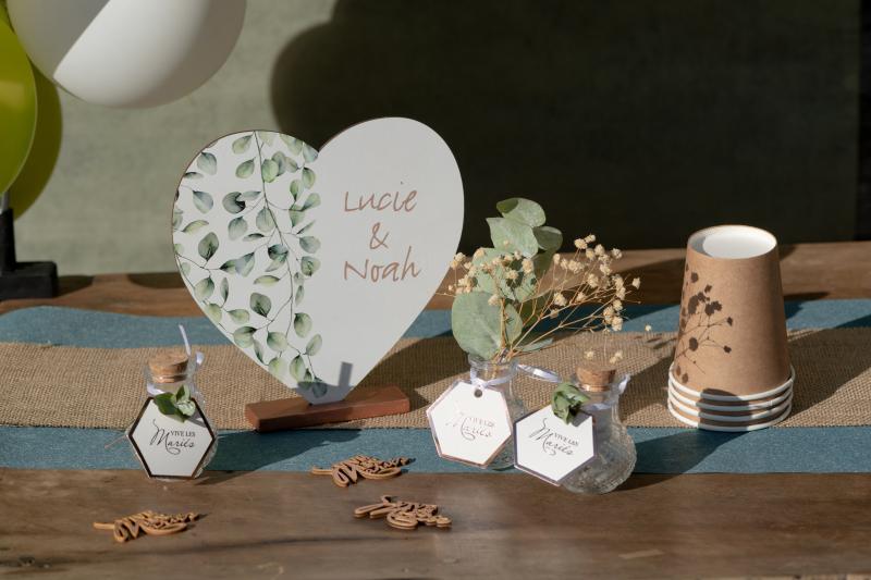 Dekorace ve tvaru srdce symbolizují lásku a přívětivost. Srdce především označuje lásku, a proto je tato dřevěná dekorace vhodná především pro svatební hostinu na stůl ať už v interiéru nebo na zahradní svatbě.