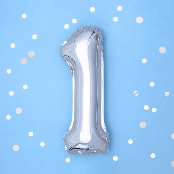 Foliová číslice 1 ve stříbrné barvě. Balonek je vhodný na narozeninové oslavy kde může vyobrazovat věk oslavence nebo výročí firmy a další.