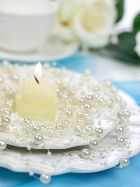 Girlanda perlová,v barvě krémové, v délce 1,3m, 5 ks Girlandu můžete použít na výzdobu svatební tabule, květin a sálu nebo místnosti pro svatební hostinu.