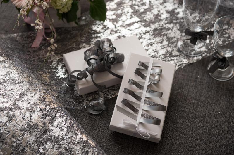 Glitrová ozdobná stuha, která je vhodná na balení dárků či dekorování stolů.
