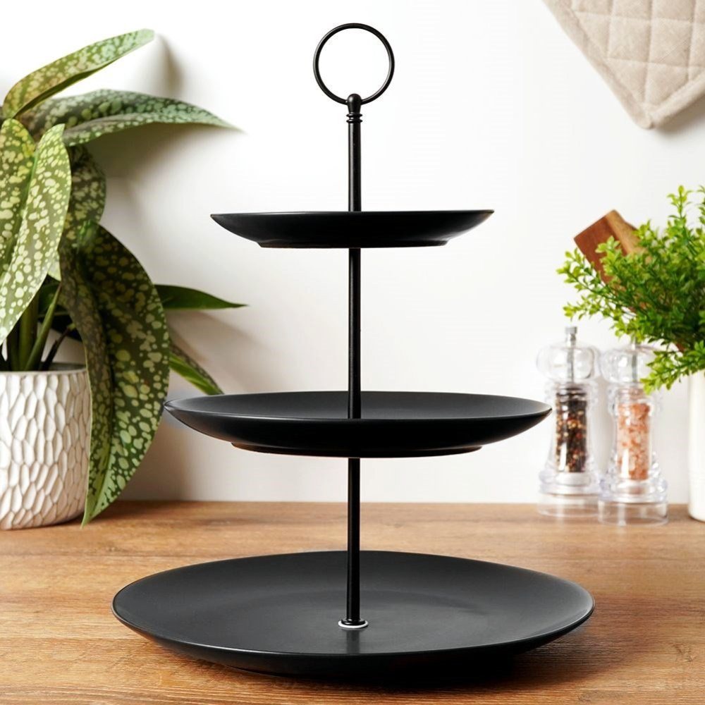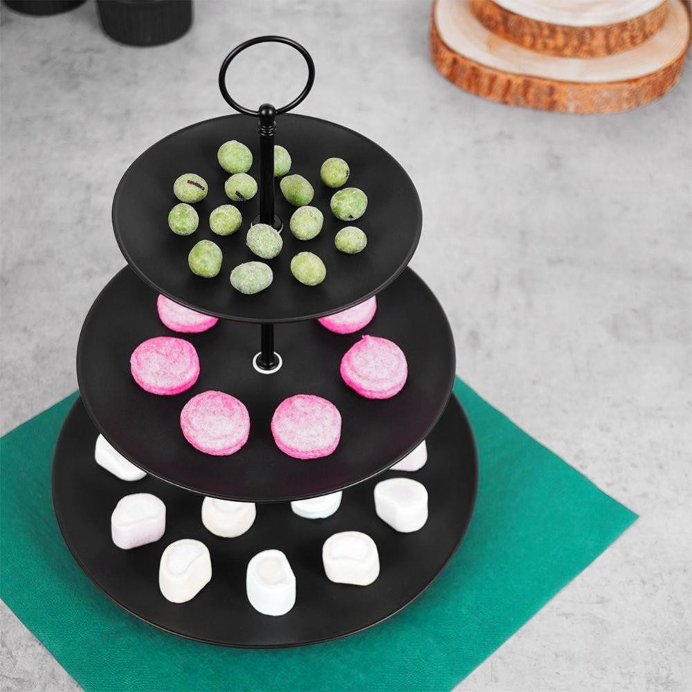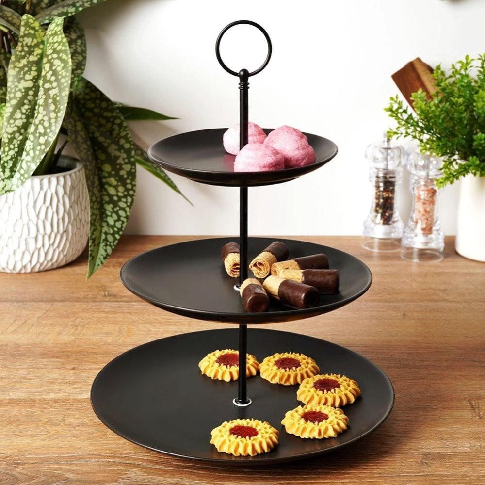 Hledáte stylový způsob, jak servírovat své dezerty, cukroví, tapas nebo občerstvení? 3-patrový porcelánový etažér v černé barvě je ideální volbou pro každého, kdo chce svému stolování dodat nádech luxusu a elegance. Tento kulatý 3-patrový stojan je nejen praktický, ale také estetický, což z něj dělá perfektní doplněk pro servírování sladkých i slaných pochoutek.