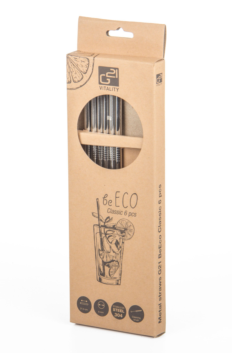 Pořiďte si elegantní, odolné, stylové a především ekologické slámky na pití z nerezu. V sadě najdete 6 nerezových brček G21 BeEco Classic o průměru 6 mm a délce 21,5 cm a kartáček na čištění. V nabídce máme i brčka zahnutá, prohlédnout si je můžete zde.