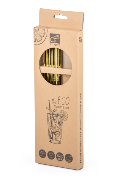 Pořiďte si elegantní, odolné, stylové a především ekologické slámky na pití z nerezu. V sadě najdete 6 nerezových brček G21 BeEco Classic o průměru 6 mm a délce 21,5 cm a kartáček na čištění. V nabídce máme i brčka zahnutá, prohlédnout si je můžete zde.