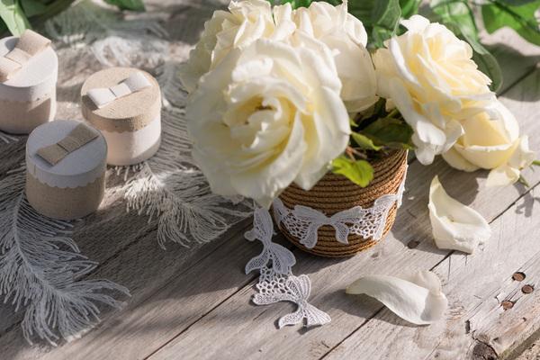 Krajková bílá stuha se vzorem mašliček. Stuha se skvěle hodí k dekorování.