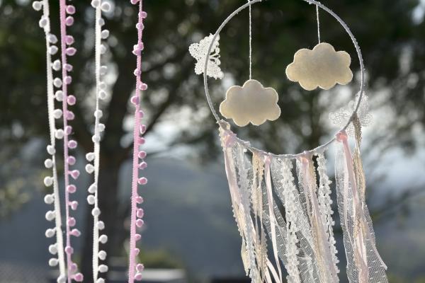 Jemný dětský lapač snů. Lapač snů je krásná dekorace, ale hlavně chrání Vaše děti před špatnými sny.