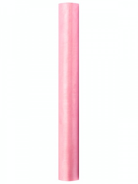 Organza 36cm/9m hladká, jasná růžová. Je vhodná pro dekoraci svatební tabule, židlí, ale také prostoru - slavobrány, sloupů, vchodových dveří… Organzu můžete použít na zdobení květin, aut, ale také obřadních prostor - kostela i pro svatbu venku. Kromě slavnostních událostí můžete organzu využít také pro výzdobu bytů. S organzou se krásně pracuje, je průsvitná, lehká, dobře tvarovatelná..