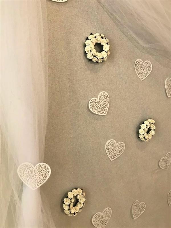 Závěsné papírové srdce vyrobené z perleťového kartonu. Papírové srdce zle využít k zavěšení nebo k dekoraci stolu.
