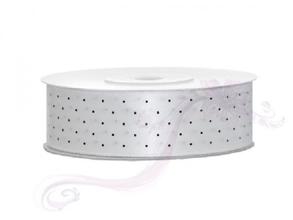 Saténová stuha puntík,bílá, šířka 2,5 cm, návin 25 m