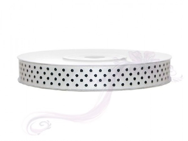 Saténová stuha puntík,bílá, šířka 1,2 cm, návin 25 m