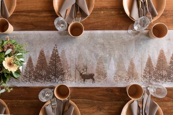 Stolová vánoční šerpa "zimní les" v přírodní barvě.