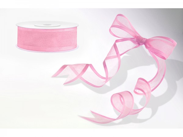 Stuha šifon růžová, šířka 2,5 cm, návin 25 m