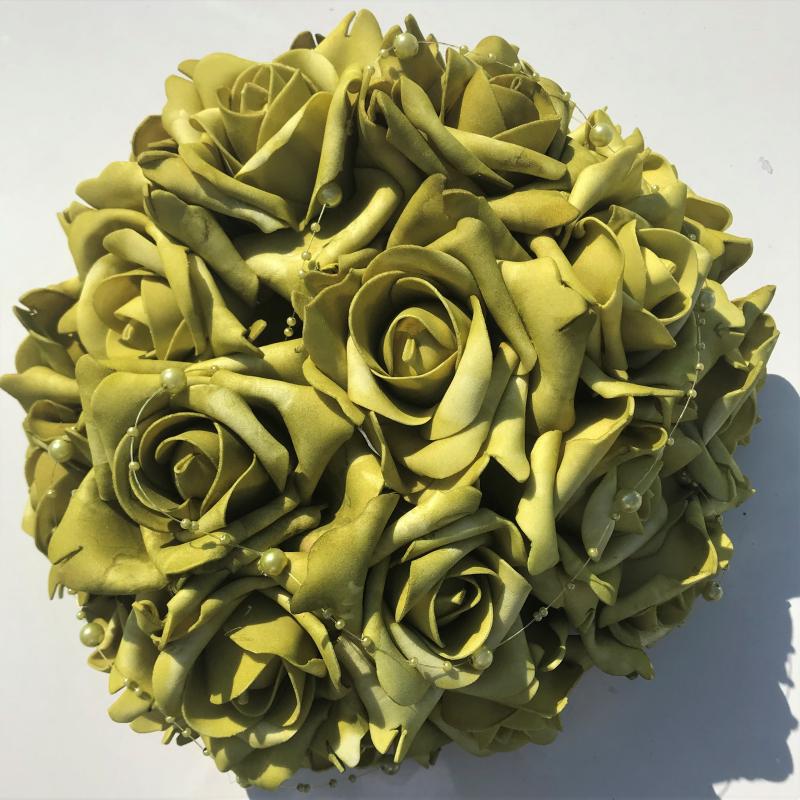 Svatební dekorace z růží s perličkami, průměr 30cm, zelená