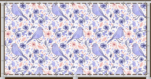 Drobnější vzor s tukany a listy