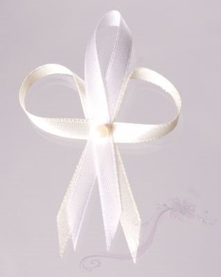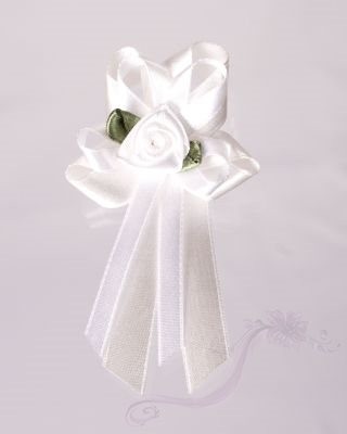 Svatební vývazky růžička s bílou stuhou