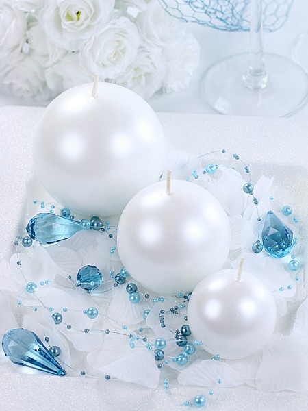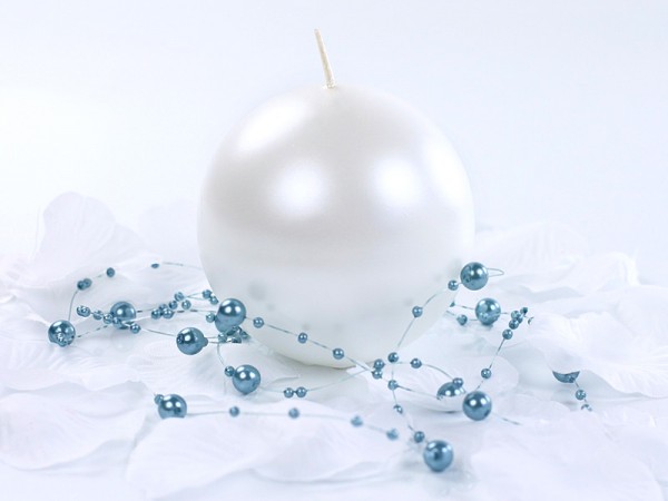 Svíčka "Koule" 80mm metalická perleťová. Svíčka vydrží hořet cca 25 hodin.