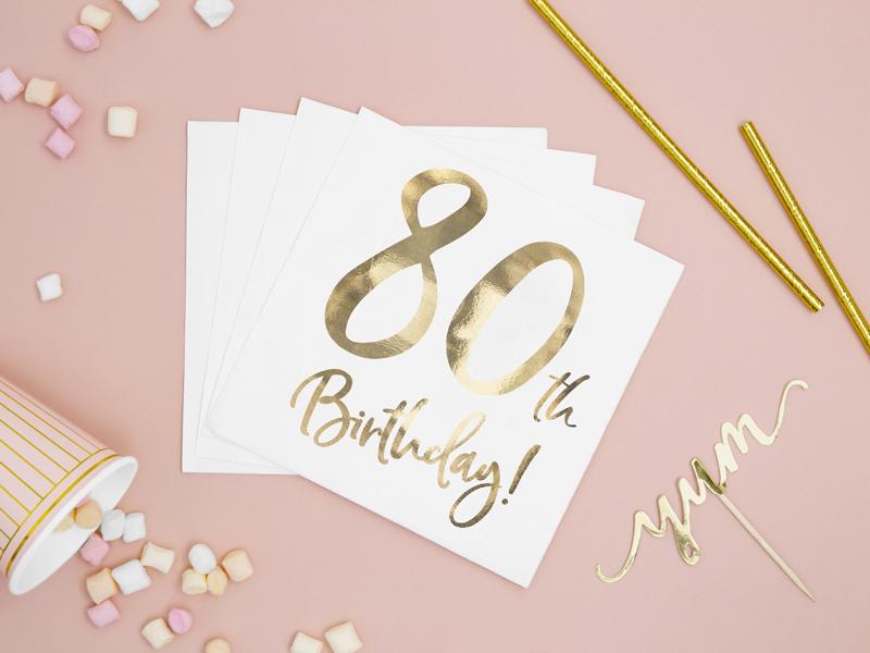 Bílé 3-vrstvé ubrousky se zlatým nápisem k oslavě jubilejních 80. narozenin.